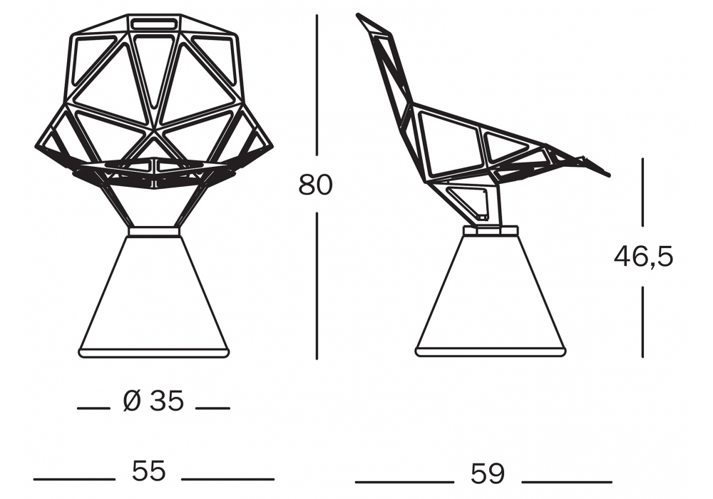 Chair_One firmata da Konstantin Grcic per Magis è una sedia con base in cemento trasparente naturale o nero. Sedile in pressofusione di alluminio con trattamento di fluotitanizzazione e verniciato poliestere, in diverse finiture. Adatta anche per esterni. Inoltre è disponibile nella versione girevole con meccanismo di ritorno oppure fisso. Su richiesta, disponibile anche il cuscino.