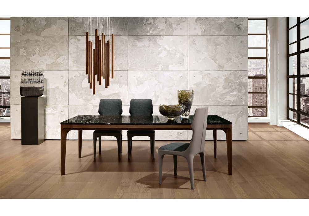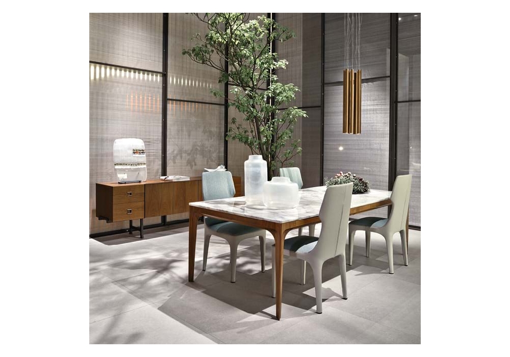 Tiche è una sedia disegnata da Carlo Colombo per Giorgetti. Sedia con la struttura in profilato d’acciaio e l’imbottitura in poliuretano espanso schiumato a freddo, rivestito in fibra. Il rivestimento, in tessuto o pelle, è completamente sfoderabile. I puntali delle gambe sono in pvc nero.
