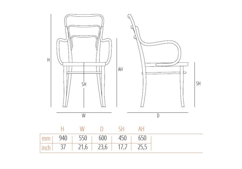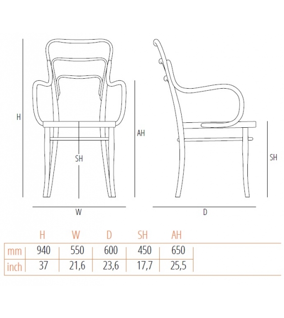 Vienna 144 Gebrüder Thonet Vienna Sedia con Braccioli