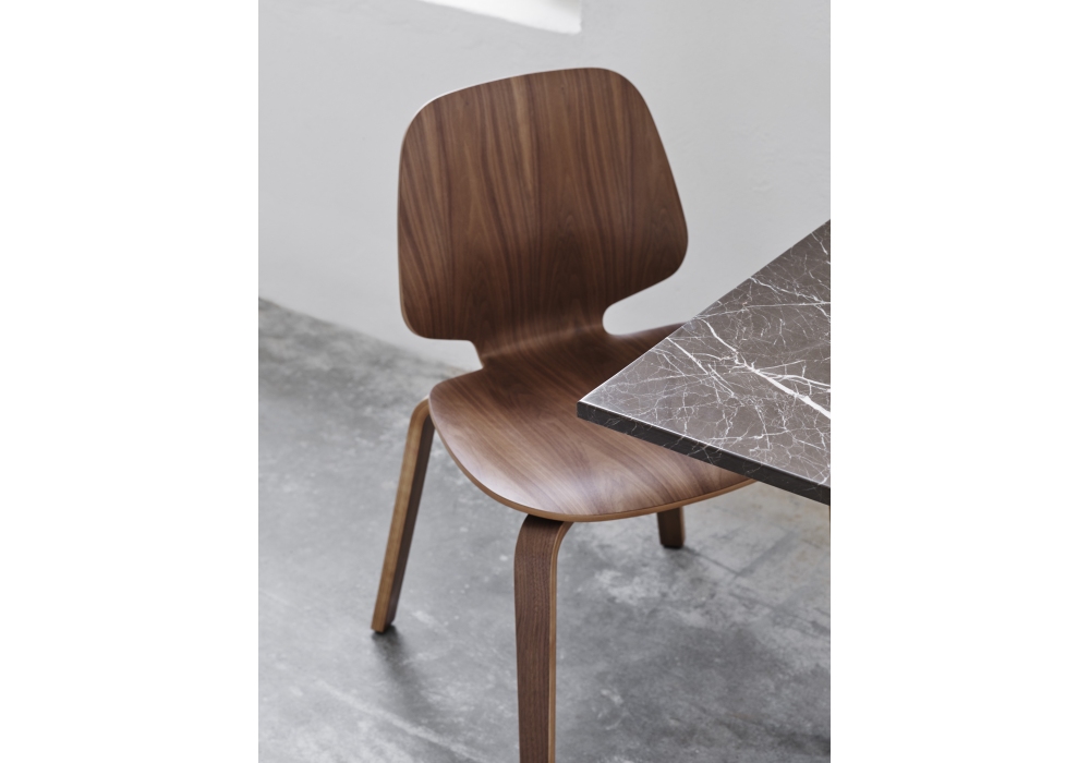 My Chair, firmata da Nicholai Wiig Hansen per Normann Copenhagen è una sedia interamente strutturata in rovere, frassino nero o noce. Schienale e seduta sono un unico corpo sagomato sempre in legno.