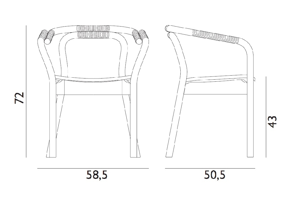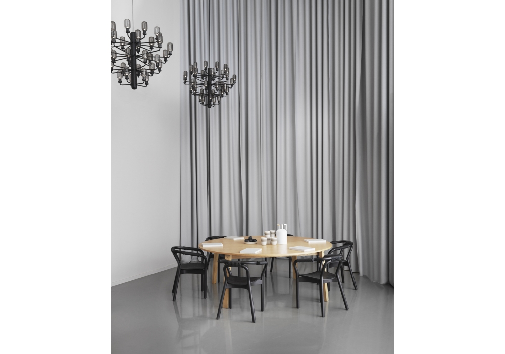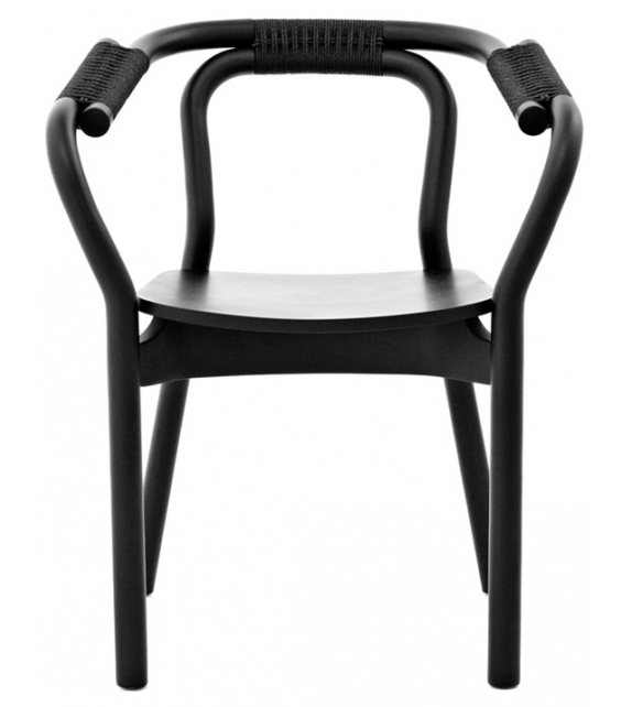 Knot, firmata da Tatsuo Kuroda per Normann Copenhagen è una sedia, interamente realizzata in legno di frassino di colore nero. La seduta è sempre in legno leggermente ricurva, mentre lo schienale ed i braccioli sono in legno tubolare intersecati armoniosamente con la struttura, e tenuti insieme da un intreccio di corda di carta. Knot è disponibile in due versioni, struttura e particolari in corda neri, o struttura nera e particolari in corda naturale chiara.