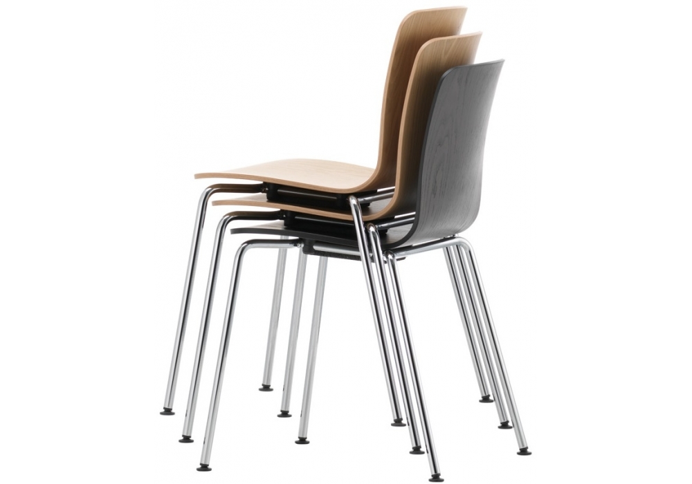 HAL Ply Tube Stackable: Scocca sedia in legno compensato. Basamento in tubolare d‘acciaio a quattro gambe, impilabile, fi nitura cromata. Possibilità di impilare fi no a 6 sedie a pavimento e fi no a 15 sedie su carrello di trasporto.