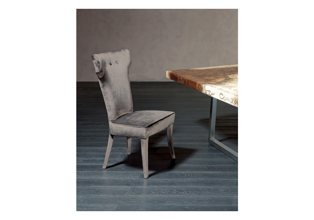 Guendalina firmata da Rugiano è una sedia con spalliera alta, seduta e gambe con rivestimento in differenti finiture.