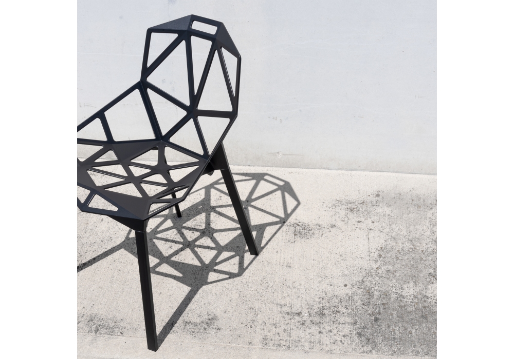 Chair_One firmata da Konstantin Grcic per Magis è una sedia impilabile, adatta anche per esterni. Gambe in profilati di alluminio verniciato e sedile in pressofusione di alluminio con trattamento di fluotitanizzazone e verniciato poliestere. Su richiesta è possibile aggiungere il cuscino seduta.