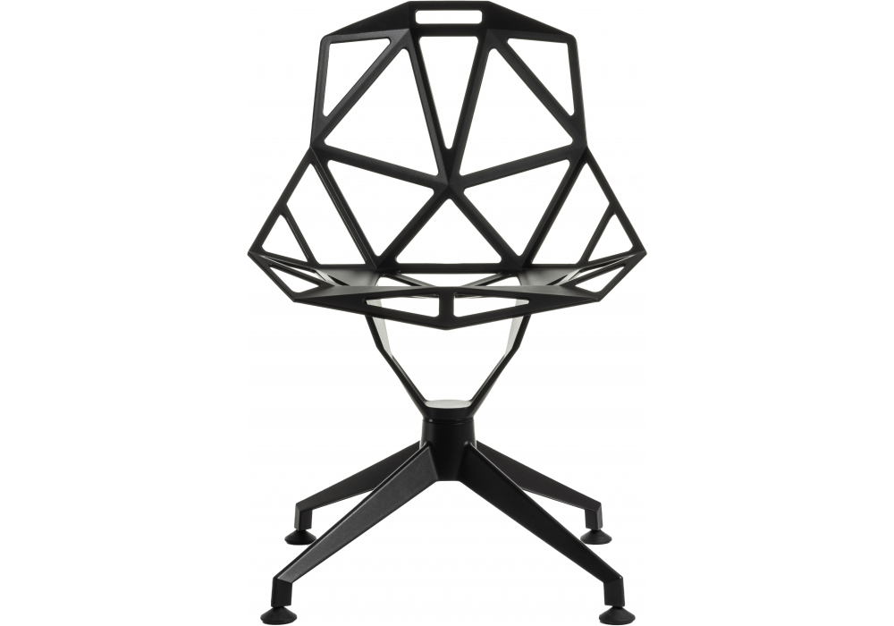 Chair_One_4Star firmata da Konstantin Grcic per Magis è una sedia realizzata in pressofusione di alluminio con trattamento di fluotitanizzazione e verniciato poliestere, in diverse finiture, adatta anche per esterni. Disponibile in due versioni, girevole o fissa.