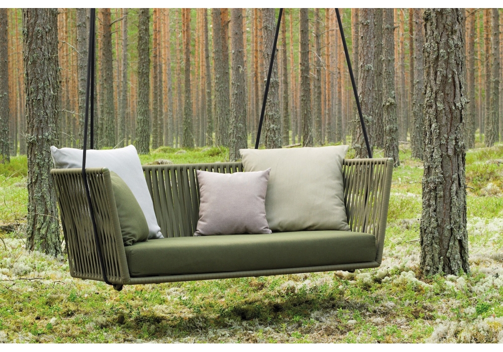 Bitta firmato da Rodolfo Dordoni per Kettal è un divano sospeso con struttura in alluminio verniciato. La scocca è interamente rivestita in corda sintetica con cuscini imbottiti e rivestiti in tessuto adatto all'uso esterno. Bitta è disponibile in diverse finiture.