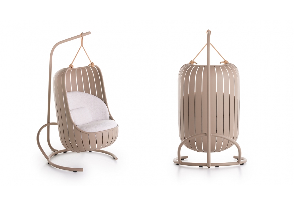 | Dimensioni | Frame: 120 x 108 x H 200 cm; Swing: Ø 90 x 122 cm. |