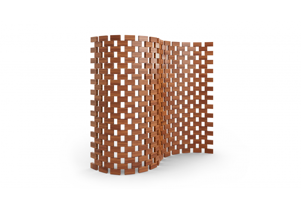 537 Paravent Ambassade firmato da Charlotte Perriand per Cassina è un paravento composto da 331 blocchi di legno in rovere naturale, rovere tinto nero o noce canaletto.