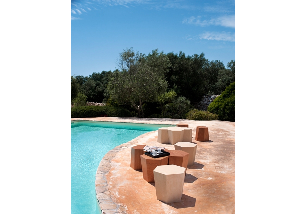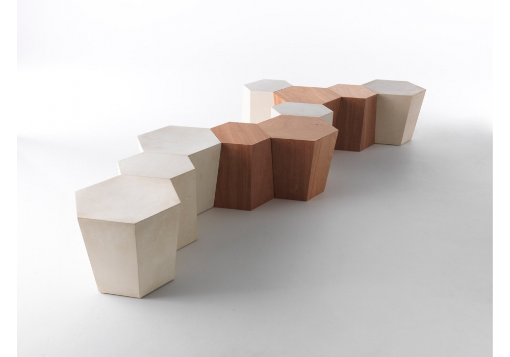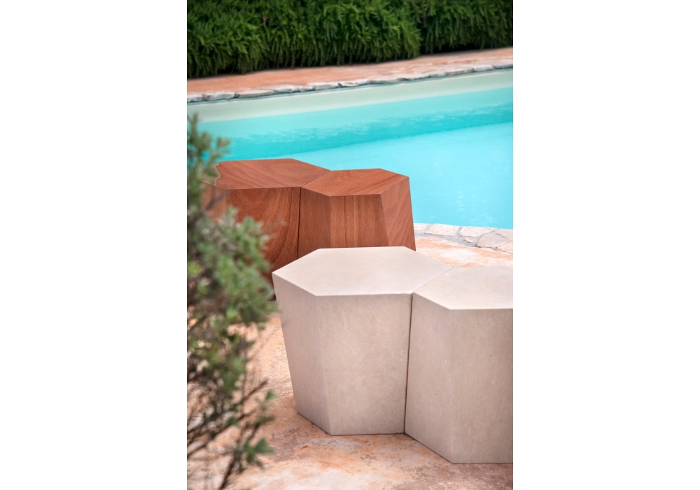 Hexagon firmato da Steven Holl per Casamania & Horm è un tavolino / sgabello realizzato pietra leccese o in legno multistrato okumé. Disponibile in 2 dimensioni.