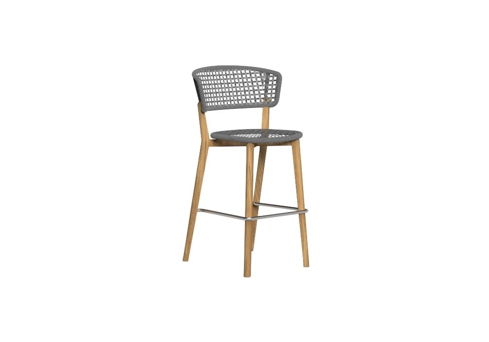 Moon Teak firmato da Cristian Visentin per Talenti è uno sgabello con seduta e schienale in corda e struttura in teak.