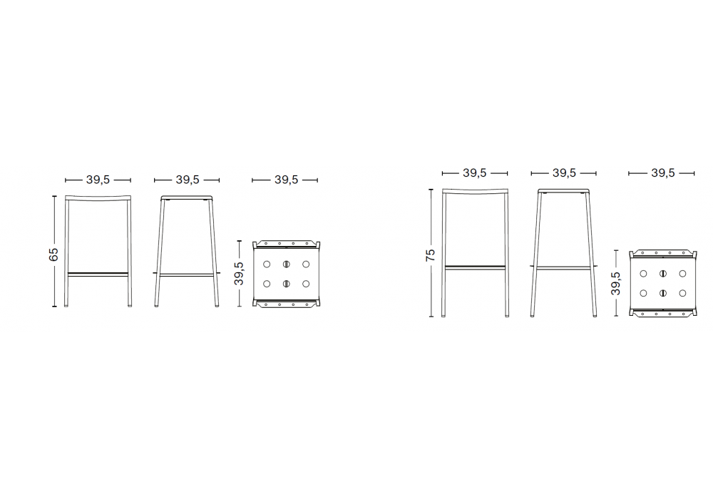 | Dimensioni | 39.5 x 39.5 x H 65 cm; 39.5 x 39.5 x H 75 cm. |