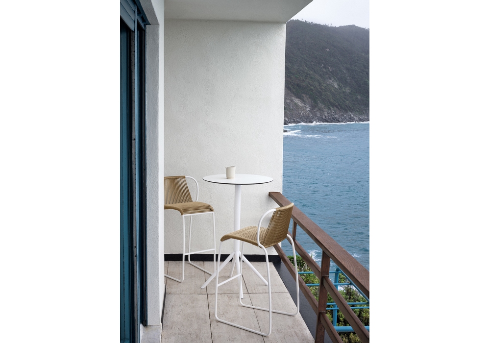 Tibes firmato da Gregorio Facco per Potocco è uno sgabello da esterno con struttura in acciaio verniciato a polveri epossidiche con seduta e schienale intrecciati interamente a mano. É possibile impilare fino a 4 sgabelli.