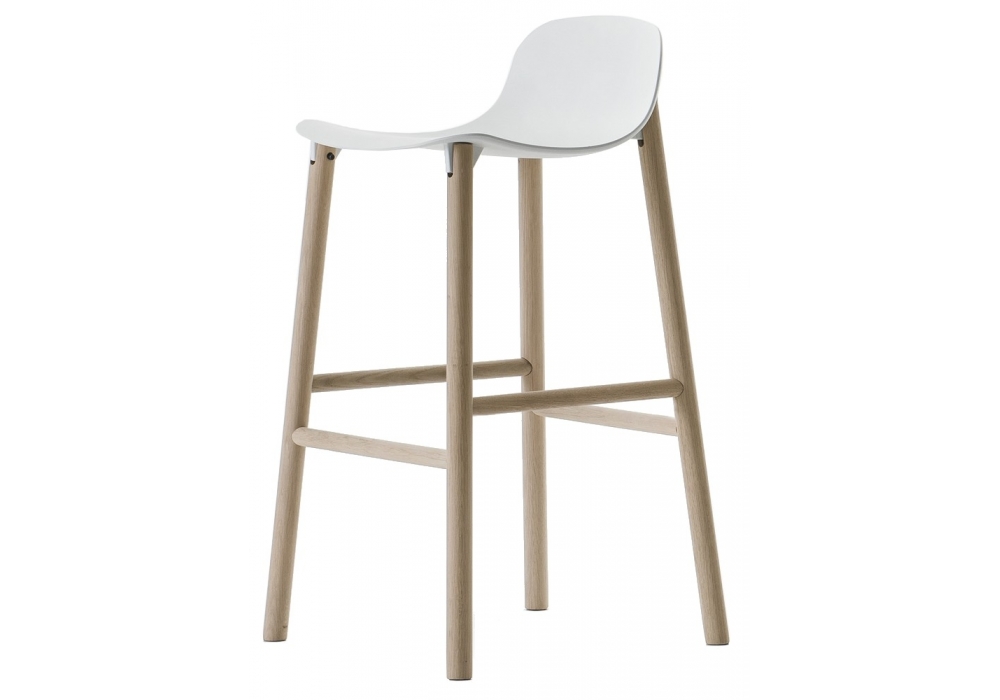 Sharky firmato da Neuland Industriedesign per Kristalia è uno sgabello con schienale basso. Scocca in poliuretano disponibile in diversi colori e base in legno massello proposta in diverse finiture.
