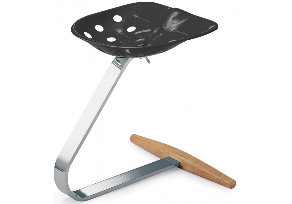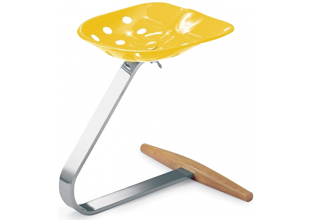220 Mezzadro firmato da Achille & Pier Giacomo Castiglioni per Zanotta è uno sgabello con gambo in acciaio cromato. Sedile verniciato nei colori: arancio, rosso, giallo, bianco o nero. Base in faggio evaporato, colore naturale.