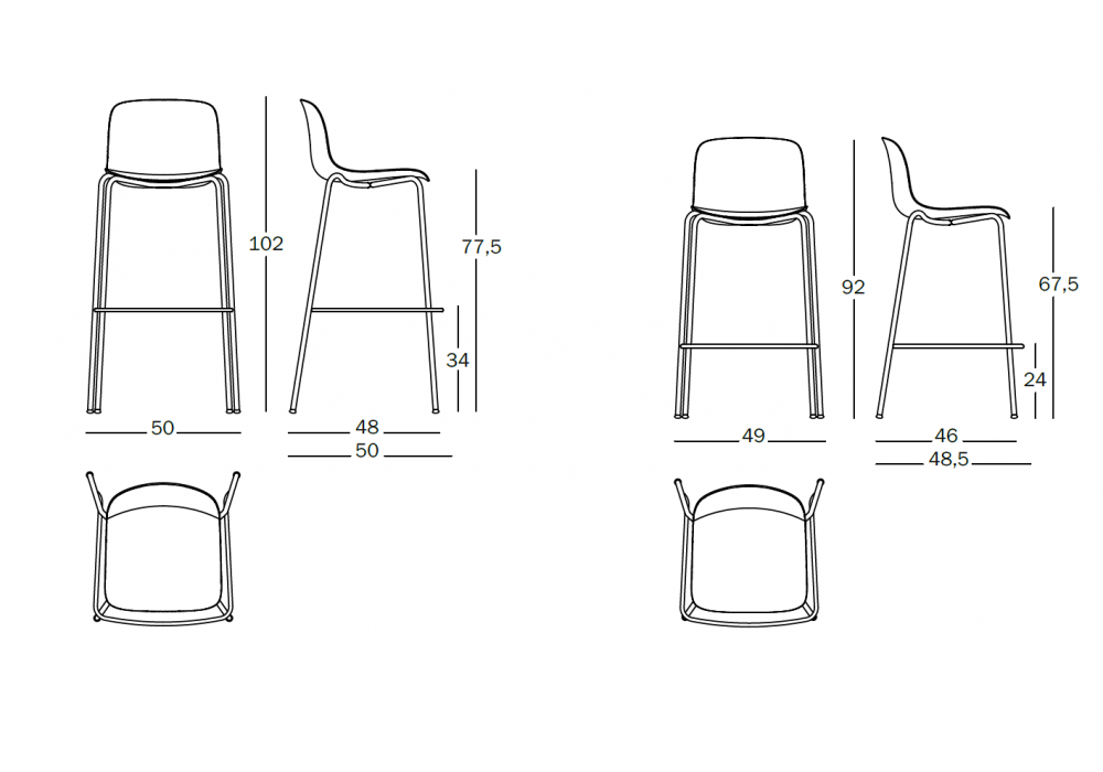 | Altezza seduta | 77.5 cm; 67.5 cm. |
