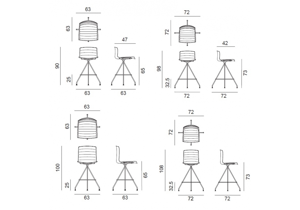 Catifa 46 firmato da Lievore Altherr Molina per Arper è uno sgabello su trespolo girevole in acciaio cromato. Scocca con schienale basso disponibile in legno, in tre finiture (rovere naturale, rovere sbiancato, wengé); rivestita in cuoio, cuoietto o imbottita in pelle, ecopelle, tessuto o tessuto cliente. Scocca con schienale alto disponibile in polipropilene monocolore o polipropilene bicolore; rivestita in cuoio, cuoietto o imbottita in pelle, ecopelle, tessuto o tessuto cliente, intera o applicata alla superficie di seduta; scocca in polipropilene bianco (PO101) tappezzata con rivestimento sfoderabile non lavabile in pelle, ecopelle, tessuto o tessuto cliente (la sedia viene consegnata con la fodera già calzata).