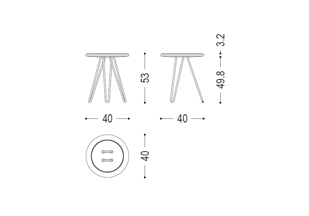 Button Stool firmato da Luca Martorano & Mattia Albicini per Riva 1920 è uno sgabello/tavolino d'appoggio realizzato con top in legno massello, si tratta di un bottone gigante infilato da grossi fili ritorti in ferro.