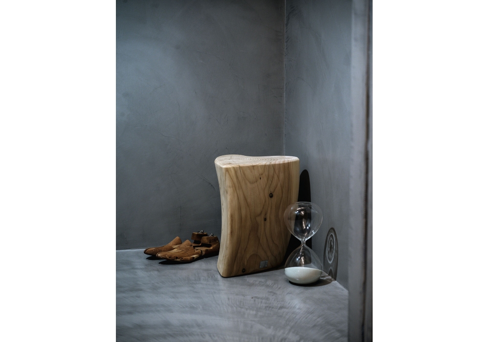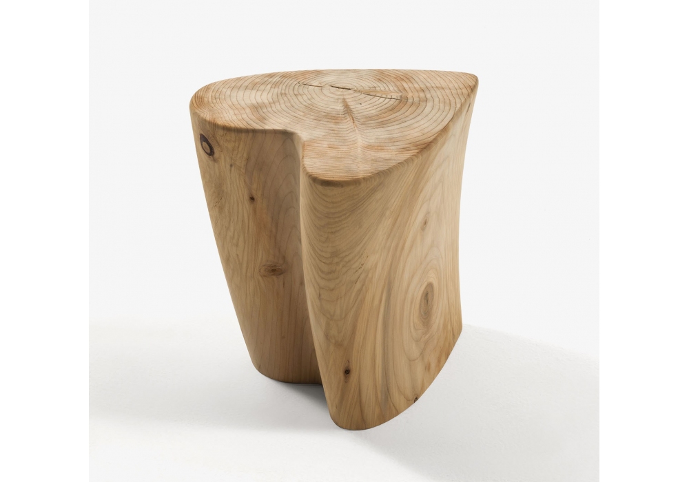 One Love firmato da Veneziano+Team per Riva 1920 è uno sgabello in legno massello di cedro profumato lavorato da un blocco unico, che riproduce le fattezze di un cuore.