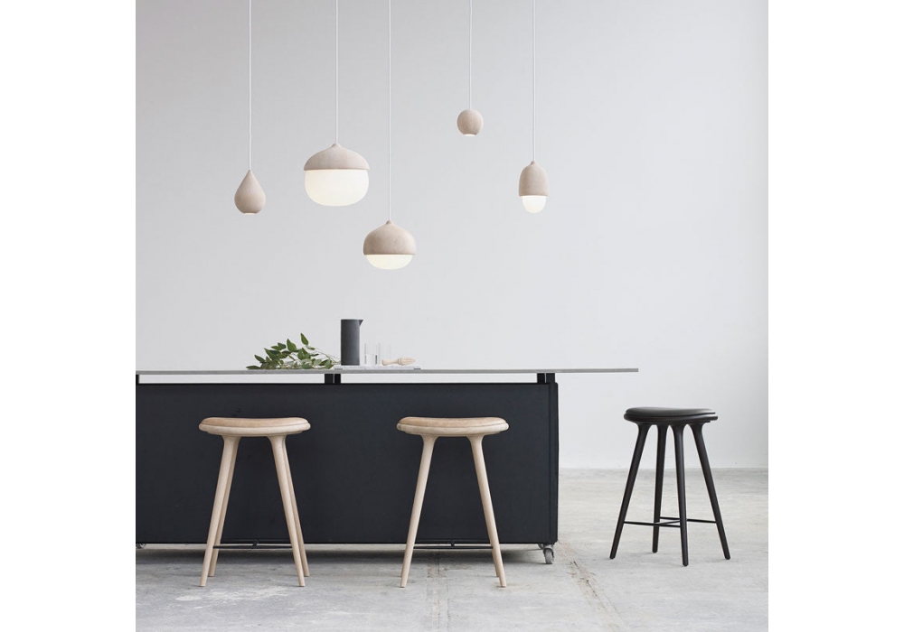 High Stool firmato da Space Copenhagen per Mater è uno sgabello realizzato in legno di faggio o rovere, disponibile in diverse finiture e dimensioni. Seduta in vera pelle, nella finitura nero.