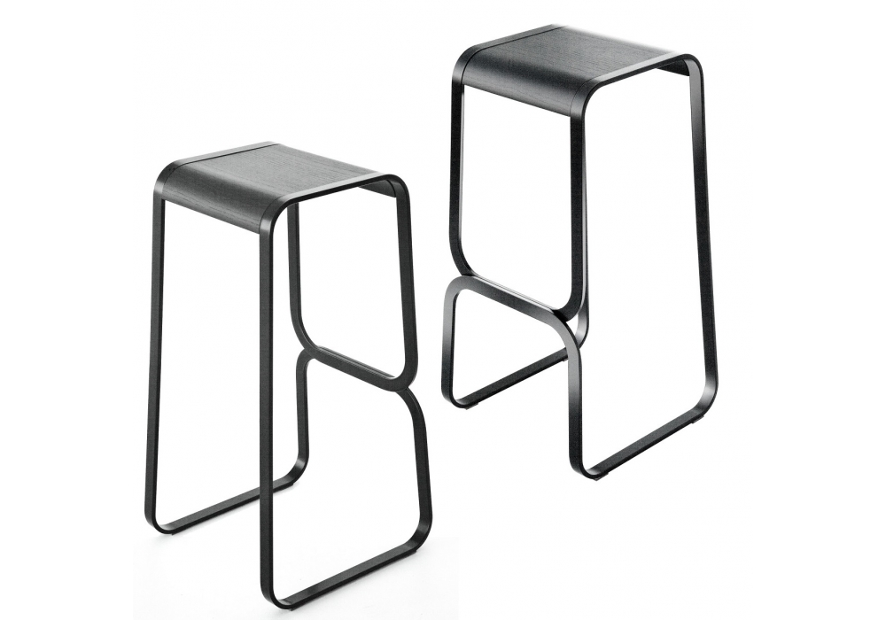 Continuum firmato da Fabio Bortolani per Lapalma è uno sgabello in due altezze verniciato a polveri. La seduta, che segue il contorno della struttura, può essere in rovere sbiancato, tinto nero, laccato bianco o rivestita in pelle.