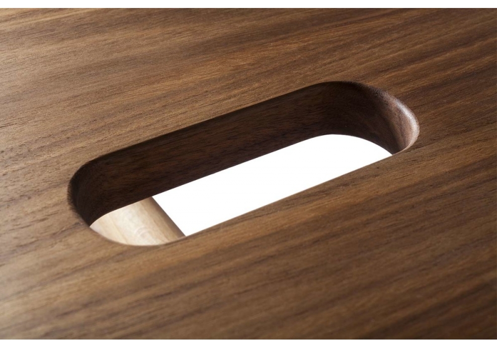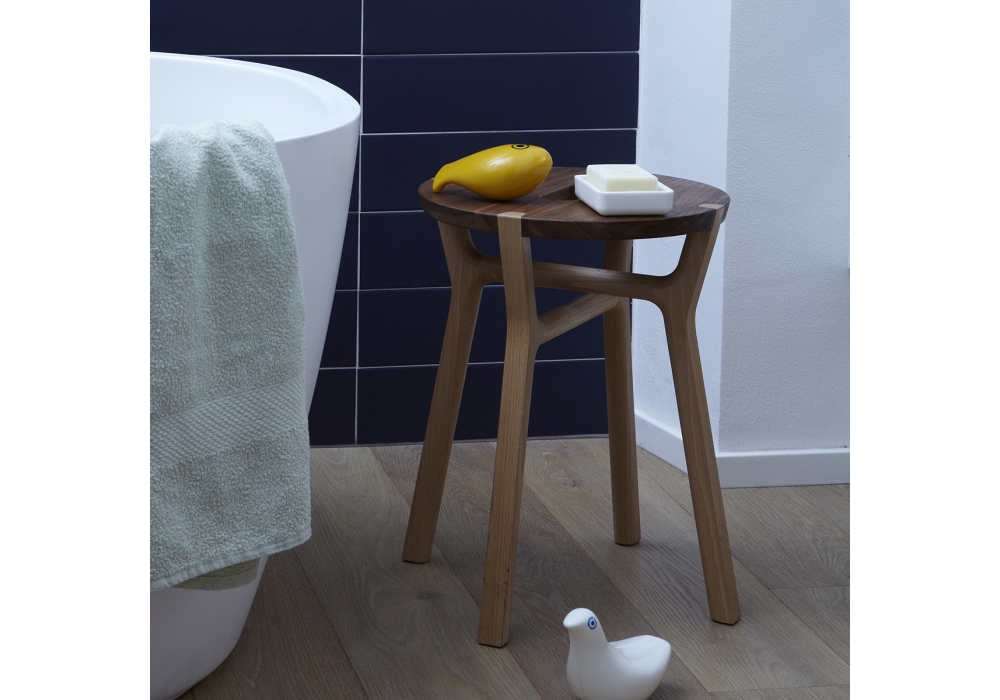 Affi firmato da Giulio Iacchetti per InternoItaliano è uno sgabello in legno massello assemblato mediante semplici incastri, con struttura in faggio naturale e seduta in noce nazionale o faggio. Disponibile nella finitura con verniciatura ad acqua trasparente.