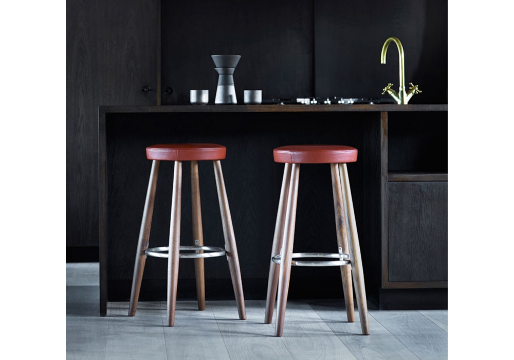CH56 firmato da Hans J. Wegner per Carl Hansen & Søn è uno sgabello bar con struttura in legno massello di rovere o noce disponibile in diverse finiture e poggiapiedi in acciaio inox. Comoda e pratica, la seduta è rivestita in pelle.