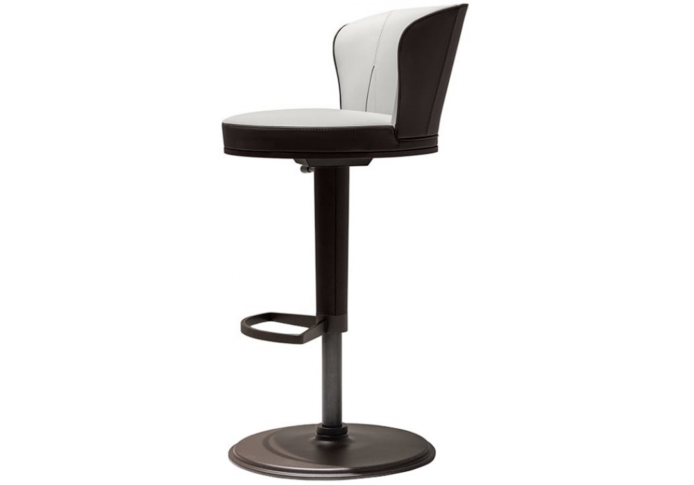 Ode firmato da Chi Wing Lo per Giorgetti è uno sgabello regolabile in altezza con rivestimento, non sfoderabile, che può essere in tessuto o pelle monocolore oppure bicolore con la parte esterna in pelle e quella interna in tessuto o pelle.