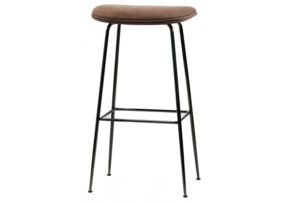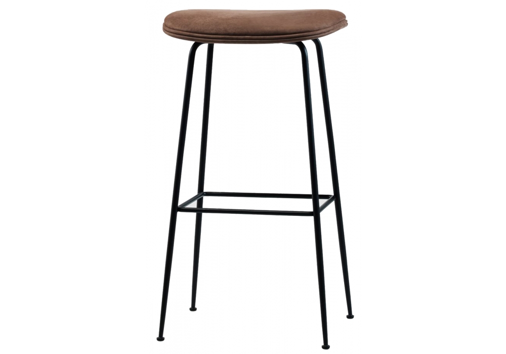 Beetle firmato da GamFratesi per Gubi è uno sgabello bar con gambe in acciaio verniciato a polvere nero, ottone o nero cromato. Rivestimento in tessuto o pelle. Disponibile in due dimensioni.