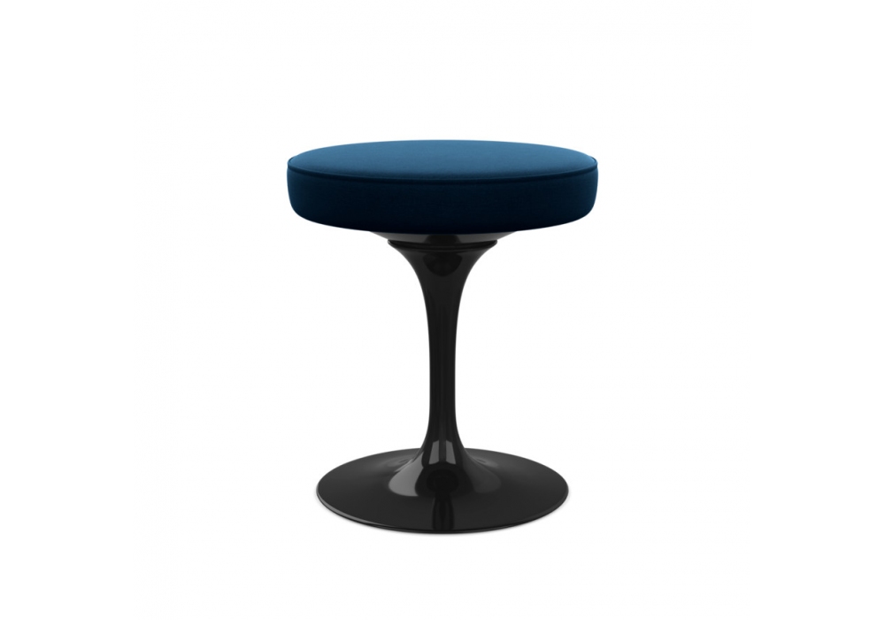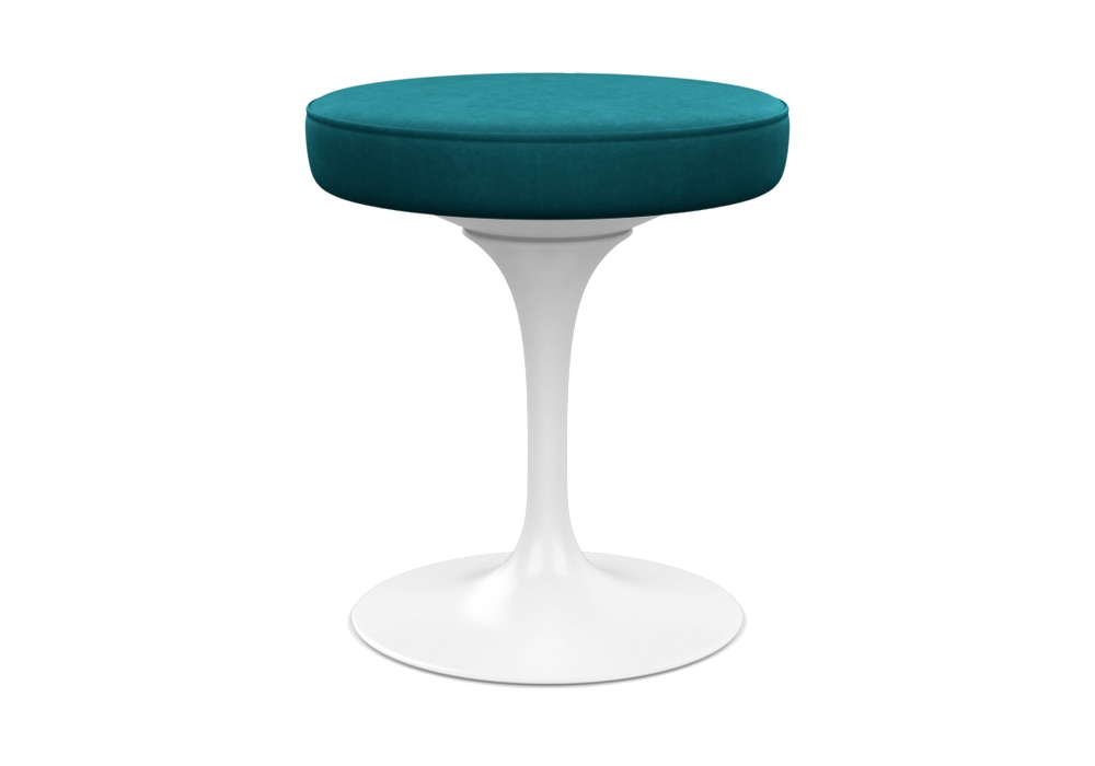 Tulip firmato da Eero Saarinen per Knoll è uno sgabello con base in alluminio trattato e protetto con Rilsan in finitura bianca o nera. Rivestimento in tessuto o pelle.