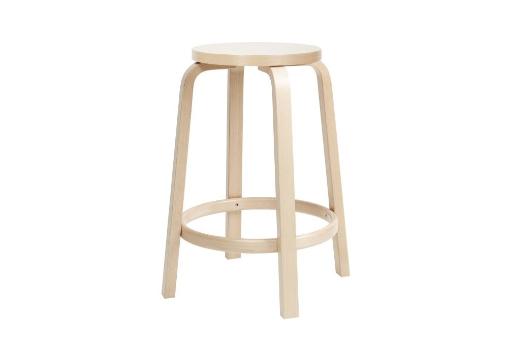 Bar Stool 64 firmato da Alvar Aalto per Artek è uno sgabello bar con gambe e bordino sedile in betulla massiccia disponibile in diverse finiture e dimensioni.