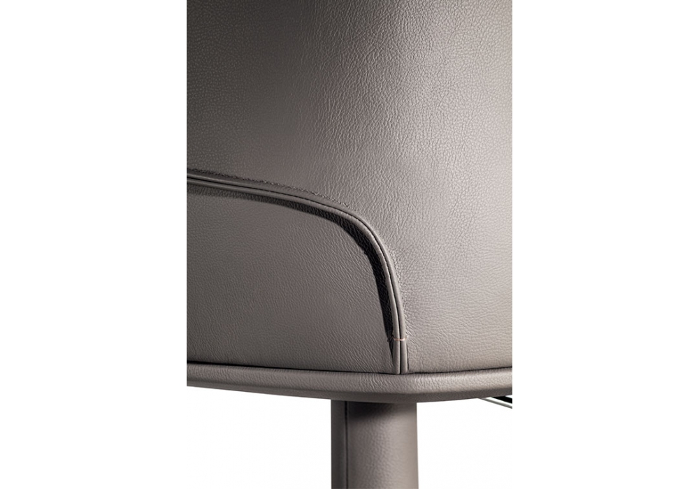 Archibald firmato da Jean-Marie Massaud per Poltrona Frau è uno sgabello con base costituita da una colonna in acciaio inox cromato, che contiene la molla a gas, un poggiapiedi e una piastra di base a pavimento. La scocca è realizzata in poliuretano rigido stampato, imbottita in poliuretano morbido stampato e ovatta poliestere rivestita in Pelle Frau o tessuto.