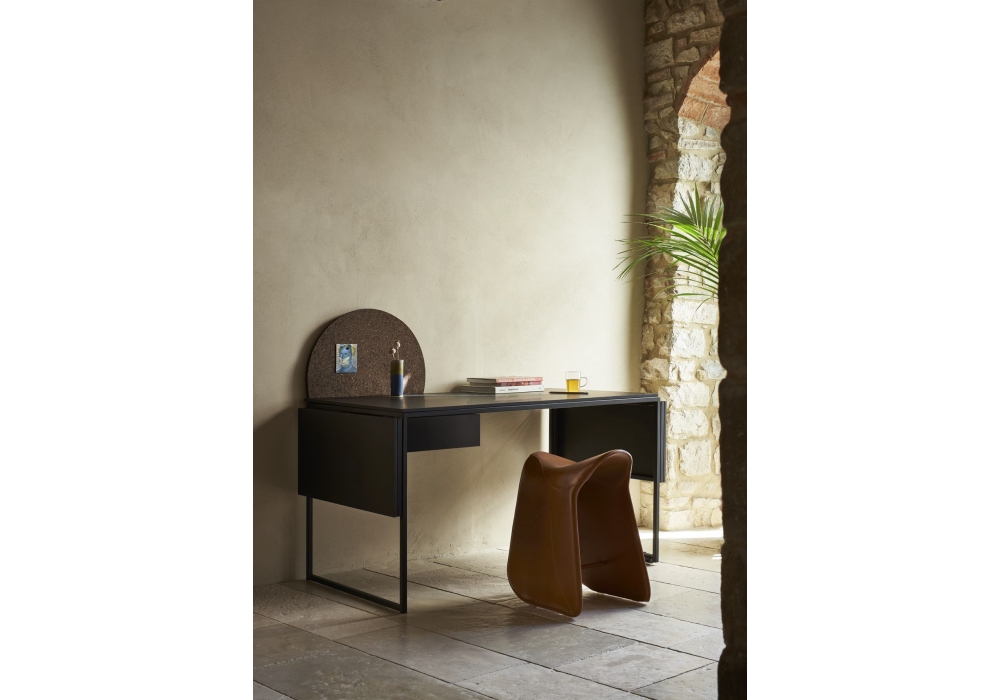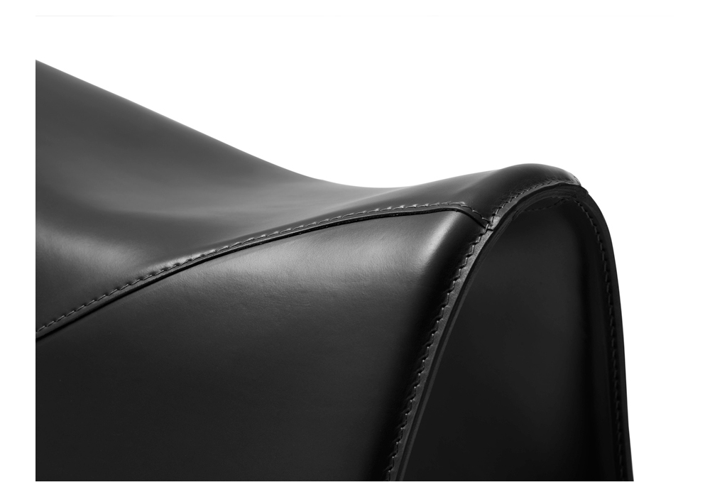 Pepe firmato da Raffaella Mangiarotti per Opinion Ciatti è uno sgabello iconico realizzato con struttura in acciaio con rivestimento in cuoio naturale o nero.