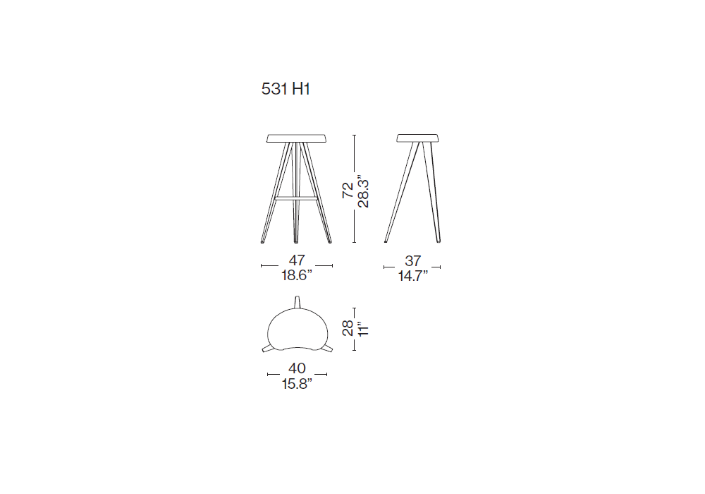 531 Mexique Stool Pro firmato da Charlotte Perriand per Cassina è uno sgabello realizzato con seduta in legno e gambe verniciate antracite opaco. Disponibile in diverse finiture.