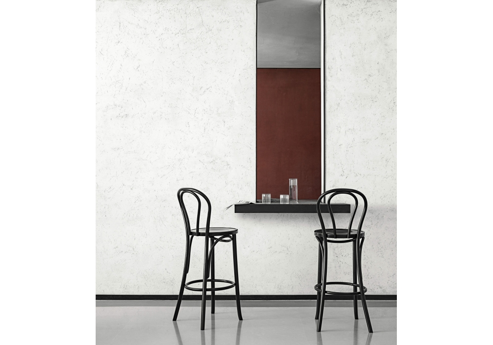 N. 18 firmato da Gebrüder Thonet Vienna è uno sgabello da bar realizzato in faggio curvato disponibile in diverse finiture.