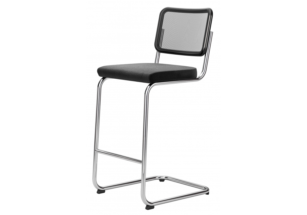 S 32 SPVNH / S 32 SPVNHT firmato da Marcel Breuer, Artistic copyright Mart Stam per Thonet è uno sgabello con telaio in tubolare d'acciaio cromato. Seduta imbottita con rivestimento in tessuto, pelle o cuoio. Cordoncino o cucitura disponibile in differenti versioni. Schienale in tessuto a rete, bordatura in faggio mordenzato in diverse finiture. Lo sgabello è inoltre disponibile in due altezze.