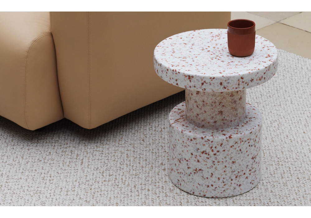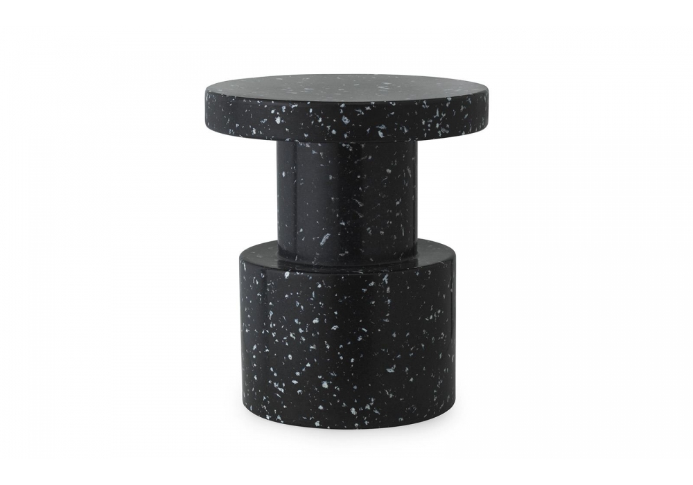 Bit, firmato da Simon Legald per Normann Copenhagen è uno sgabello, interamente strutturato in materiale plastico riciclato, di forma cilindrica in quattro differenti finiture; bianco, nero, bianco multi o nero multi.