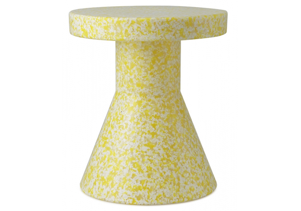 Bit Cone, firmato da Simon Legald per Normann Copenhagen è uno sgabello, interamente strutturato in materiale plastico riciclato, di forma conica in tre differenti finiture; giallo, blu, o nero.
