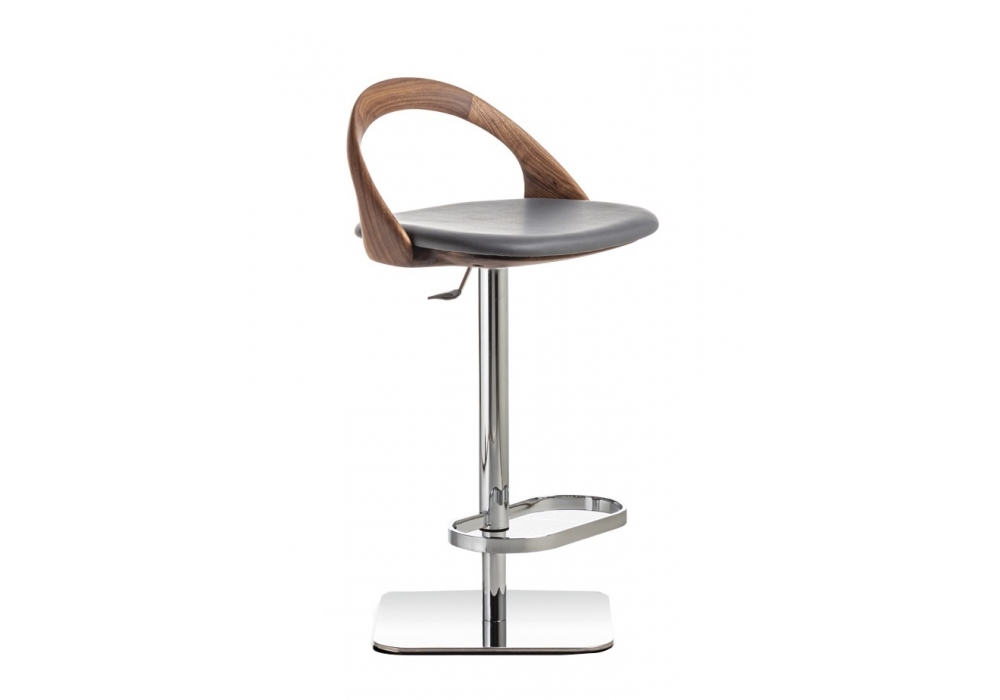 Ester Lift firmato da S. Bigi per Porada è uno sgabello girevole ad altezza regolabile realizzato con struttura in massello di noce Canaletta o frassino, base in metallo e rivestimento in tessuto.