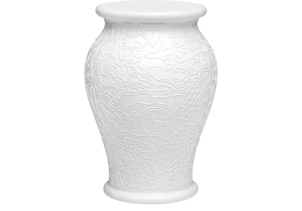 Ming firmato da Studio Job per Qeeboo è uno sgabello/tavolino d'appoggio di forma cilindrica svasata realizzato interamente in polietilene. Ming è disponibile in differenti finiture.