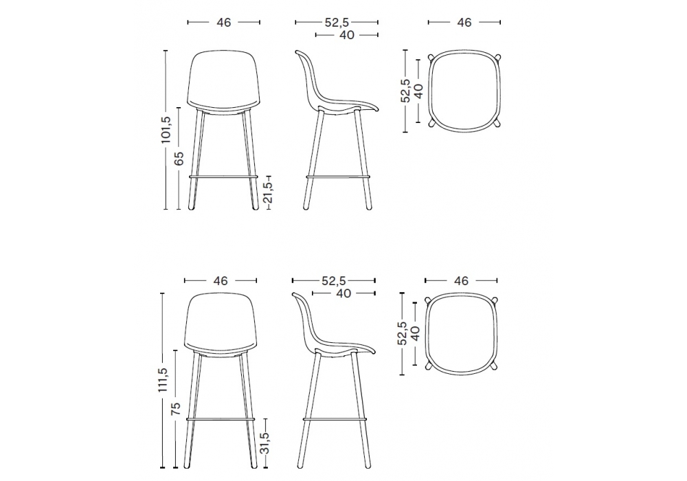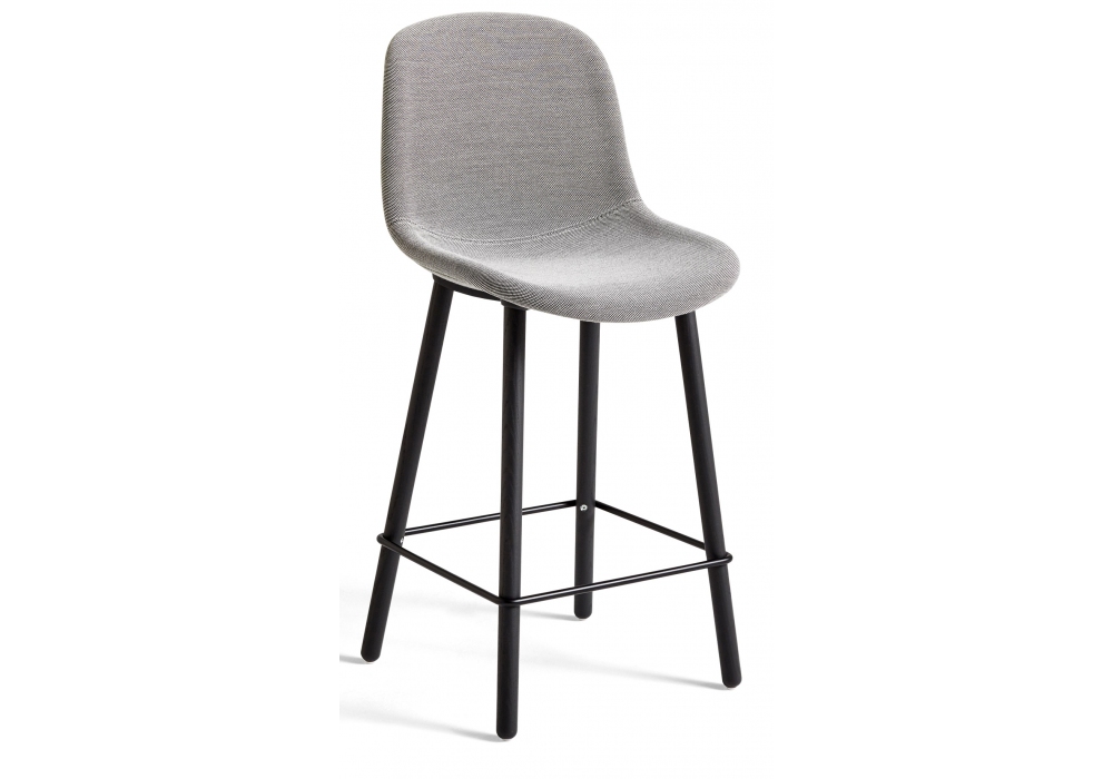Neu 12 prodotto e firmato da Hay è uno sgabello con scocca con rivestimento in pelle o tessuto, gambe in legno di rovere e poggiapiedi in alluminio pressofuso verniciato a polvere nero soft o in inox. Disponibile in differenti dimensioni e rivestimenti.