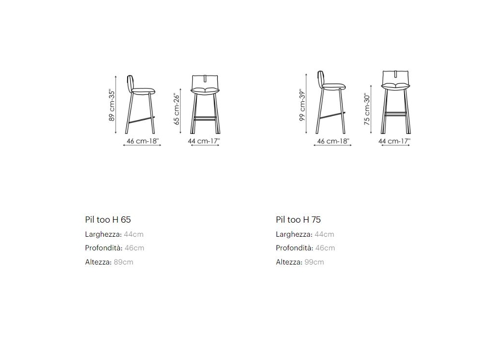 Pil too firmato da Alessandro Busana per Bonaldo è uno sgabello con struttura in metallo verniciato in diverse finiture, seduta imbottita con gomma indeformabile ad alta densità e rivestita in vari tessuti e colori. Disponibile in 2 dimensioni.