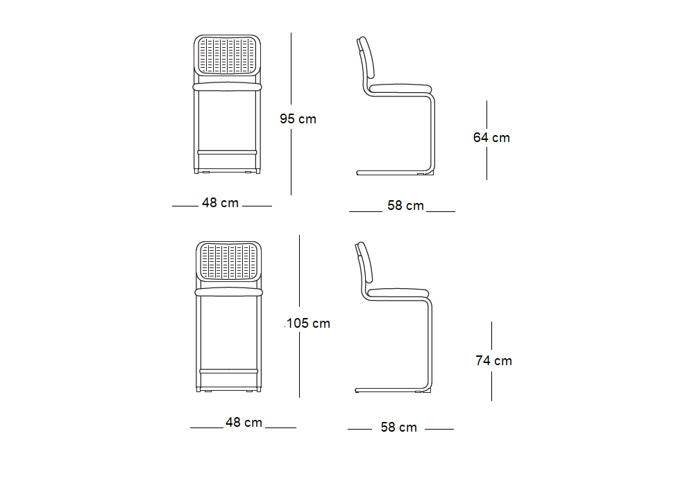 Cesca firmato da Marcel Breuer per Knoll è uno sgabello con struttura in tubolare d'acciaio cromato o verniciato in diverse finiture opache. Schienale in faggio impagliato naturale o verniciato nero e seduta rivestita in pelle o tessuto.