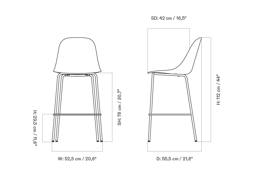 Harbour Side Counter firmato da Norm Architects per Audo Copenhagen è uno sgabello con scocca in polipropilene e gambe in acciaio verniciato a polvere nero. Disponibile in diverse finiture e dimensioni.