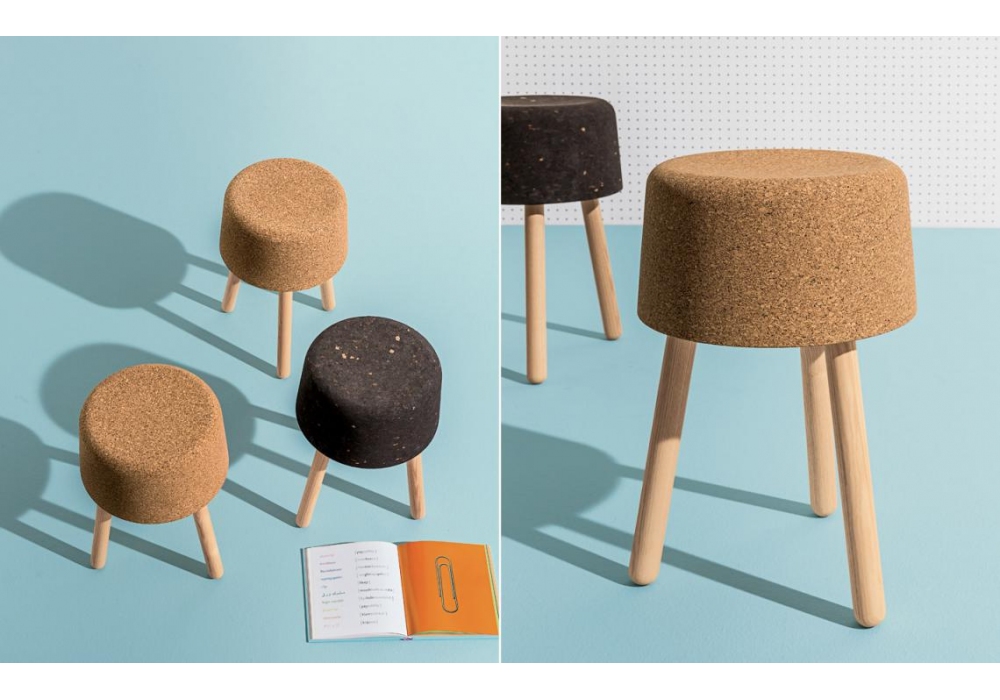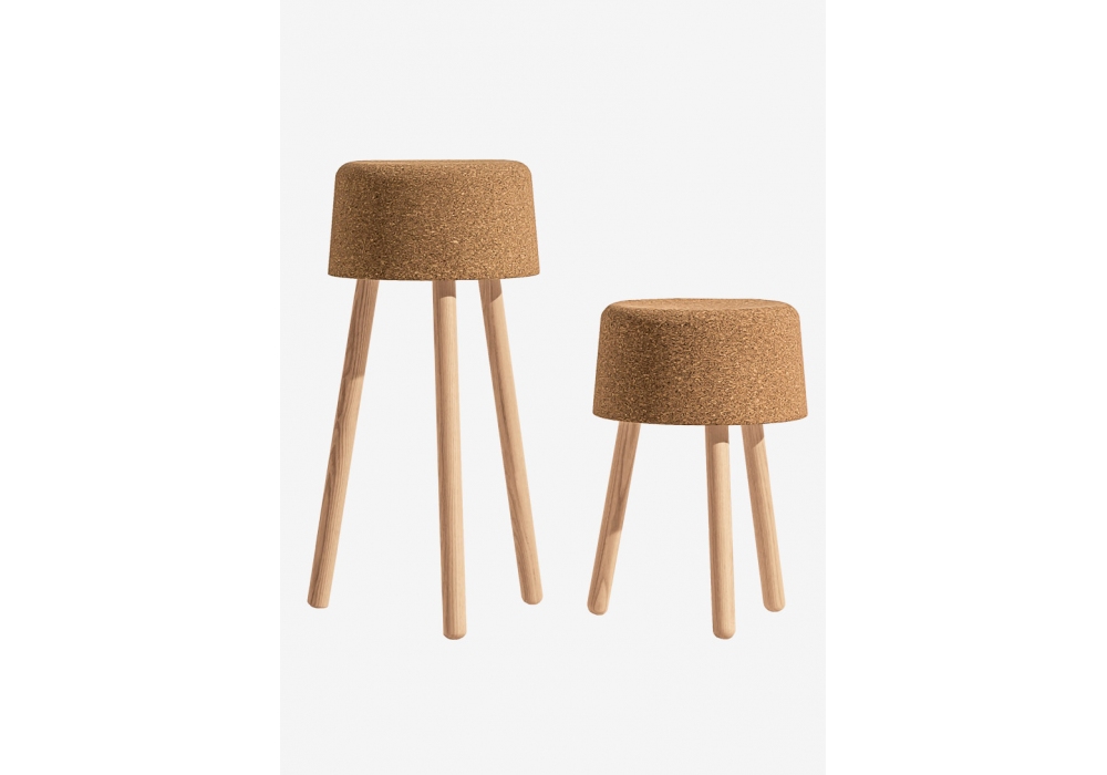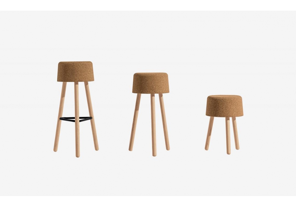 Bombetta firmato da Discipline Lab è uno sgabello con seduta in sughero naturale o nero, gambe in frassino naturale o tinto nero. Disponibile in tre diverse altezze, nella versione più alta dispone anche di un pratico poggia piedi in metallo nero goffrato.