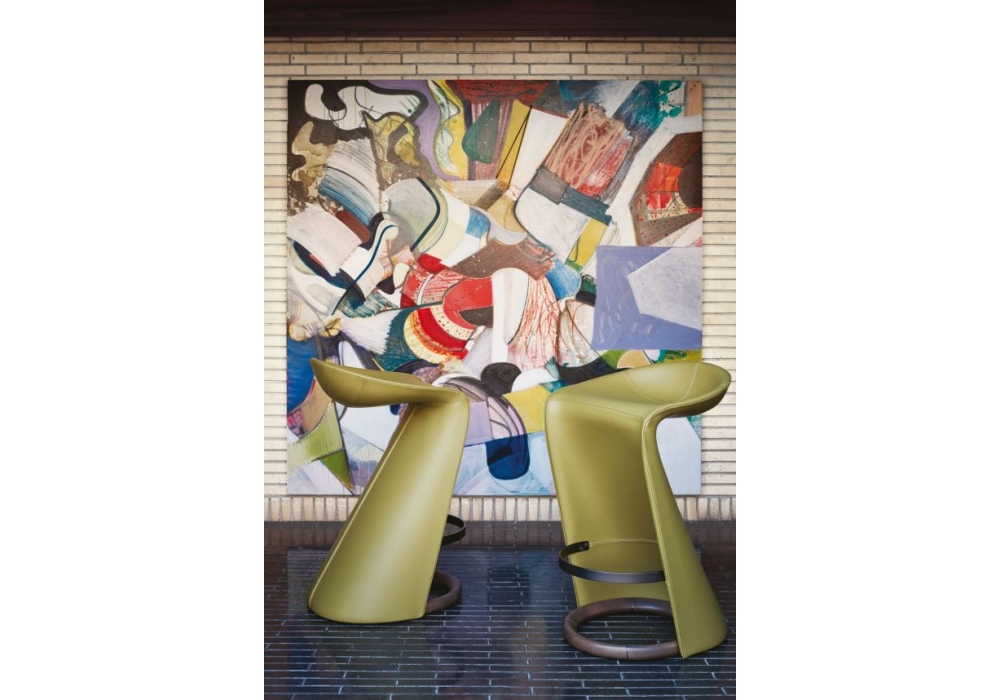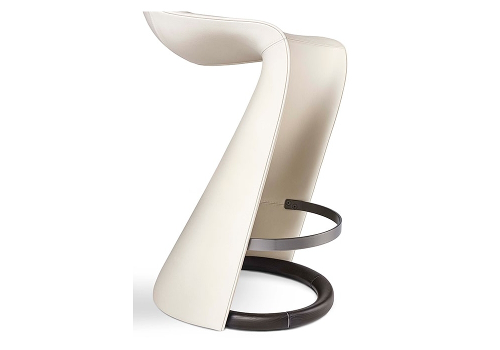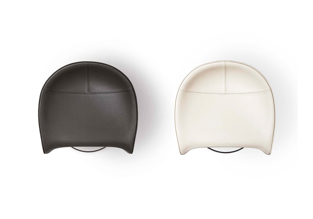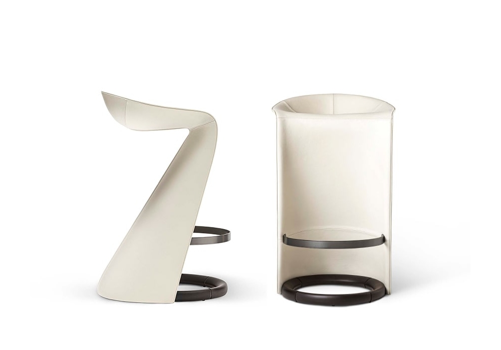 Skirt firmato da M2Atelier per Giorgetti è uno sgabello con basamento ad anello in massello di frassino, disponibile in varie finiture. Il poggiapiedi è in metallo finitura pewter. Il rivestimento è in pelle in numerosi colori. Disponibile inoltre in due altezze.