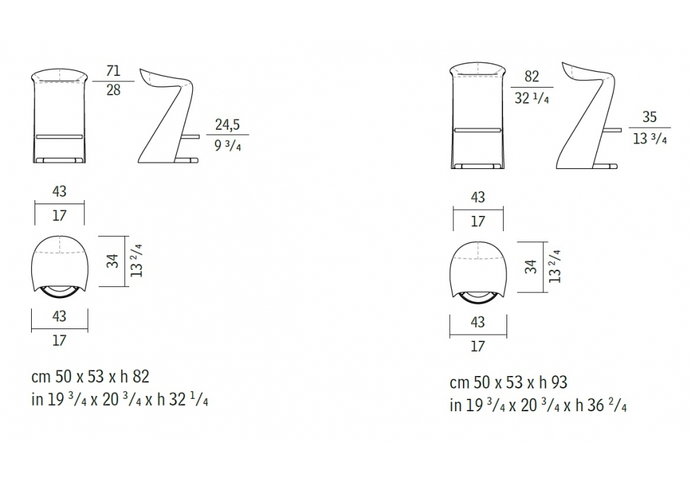 | Dimensioni | • 50 x 53 x H 82 cm; • 50 x 53 x H 93 cm |