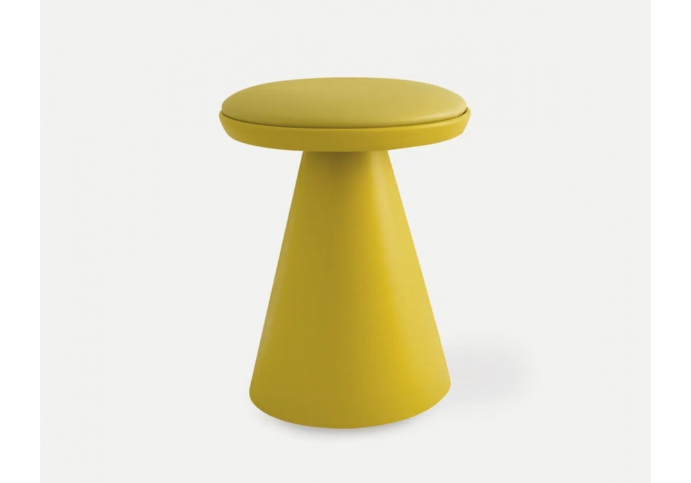 Pion firmato da Ionna Vautrin per Sancal è uno sgabello con struttura in MDF laccato, seduta in pelle nella stessa finitura. Disponibile in diversi colori.