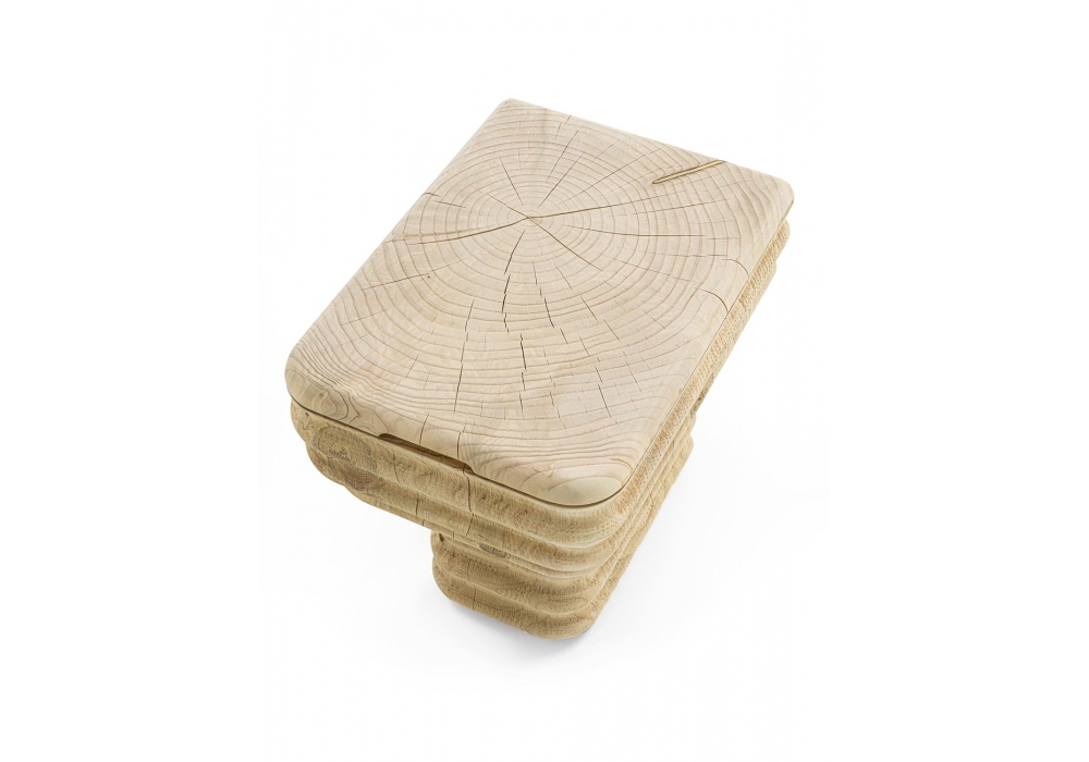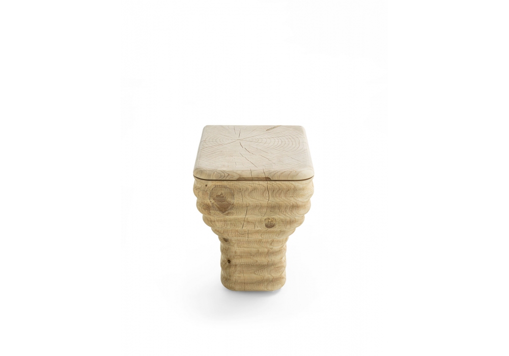 Waves firmato da Authentic Design per Riva 1920 è uno sgabello in legno massello di cedro profumato lavorato da un blocco unico e caratterizzato da un design ad onde.