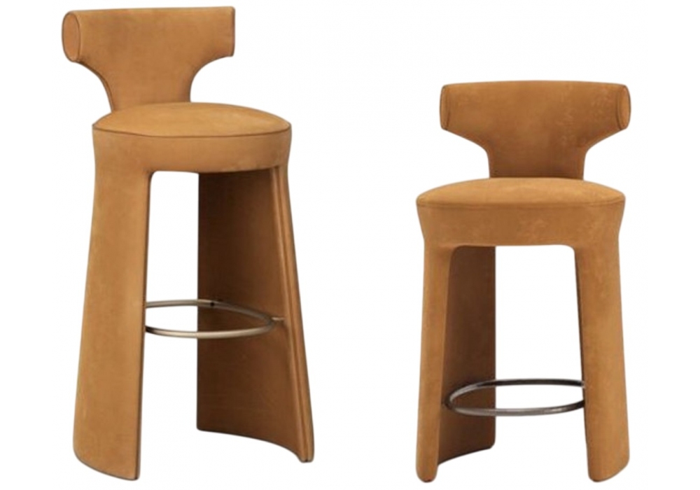 Inga firmato da Roberto Lazzeroni per Baxter è uno sgabello con struttura, seduta, gambe e schienale in multistrato di betulla e pioppo. Imbottitura in poliuretano espanso a densità differenziata. Battitacco in metallo con finitura a scelta. Disponibile in diverse altezze. Rivestimento solo in pelli morbide.