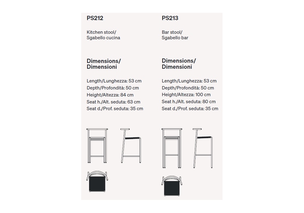 Disponibile in 2 versioni: sgabello da cucina o sgabello da bar.